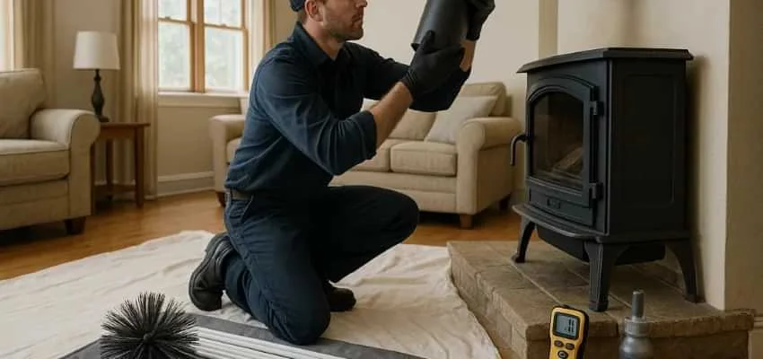Poor draft causes smoke roll-out and sluggish startups. We evaluate connector angles, reduce unnecessary elbows, fix diameter mismatches, and make sure the cap is clear. After repairs, we perform an energy efficiency tune up to help the stove breathe better in Strathcona, Hamilton.